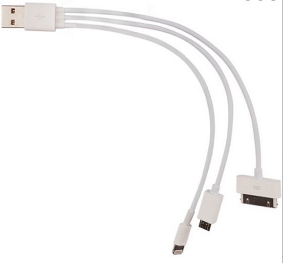 3 in 1 USB Charger 8 Pin + Dock Connector + Micro USB Cable f iPhone 4 5 Android Phones Apply to:iphone 5/5s/4/4s, android phone with micro usb