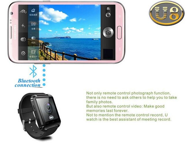 Wearable Device Bluetooth Smart Watch WristWatch U8 for iPhone 4/4S/5/5S Samsung S4/Note 2/Note 3 HTC Android Phone Item Type:Wristwatches